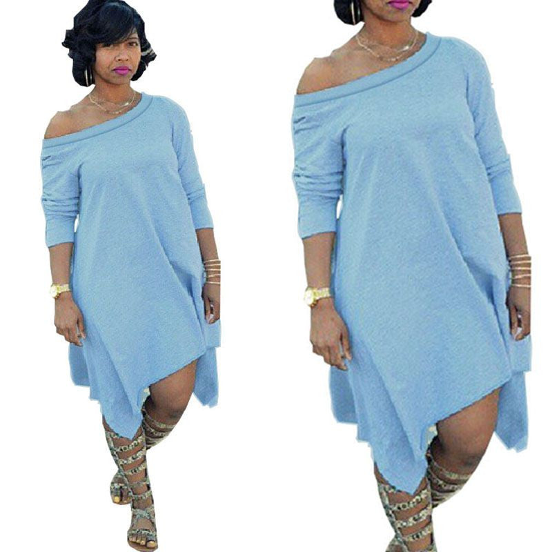 Boho Dress Sexy Women Oblique Irregular Loose dress Beach Dresses L4 UBY