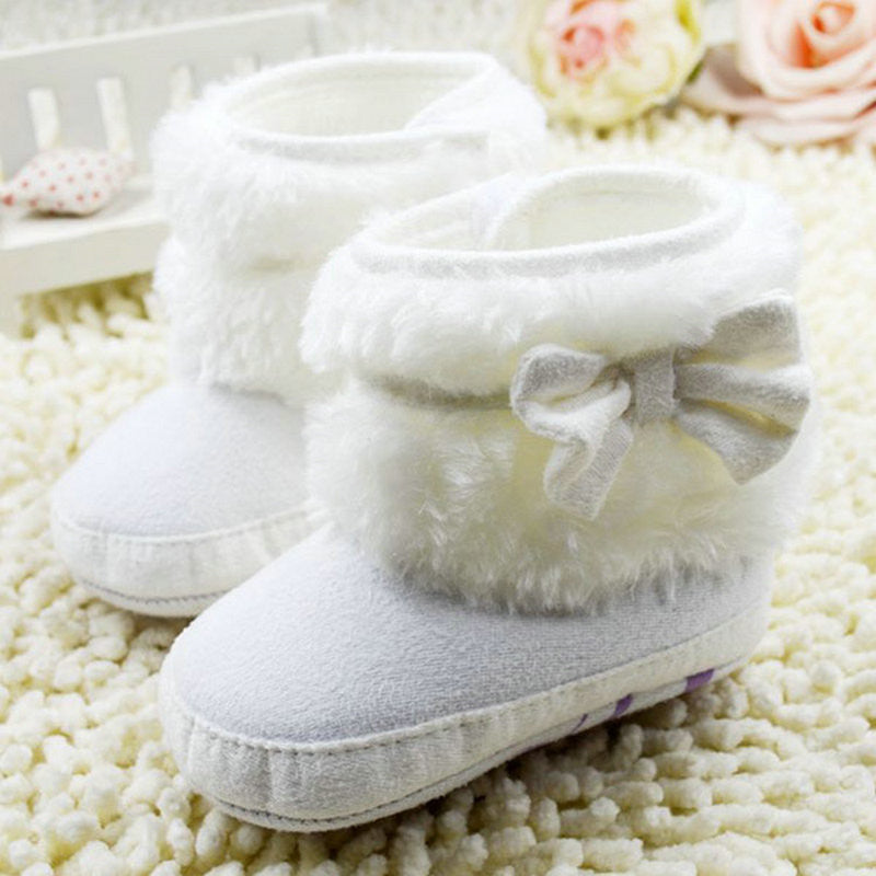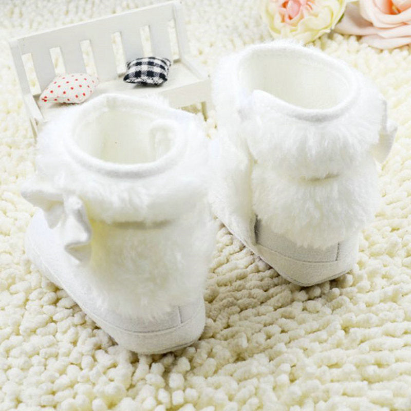 born 0-18Months Baby Girls White Bowknot Crib Shoes Toddler Soft Warm Snow Boots First Walkers UBY