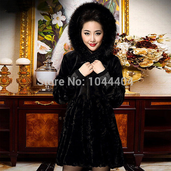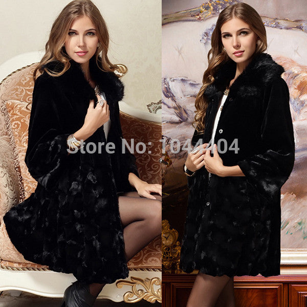 Brand Womens Jacket Fox Fur Collar Outerwear Long Parka Long Sleeve Coat Overcoat UBY