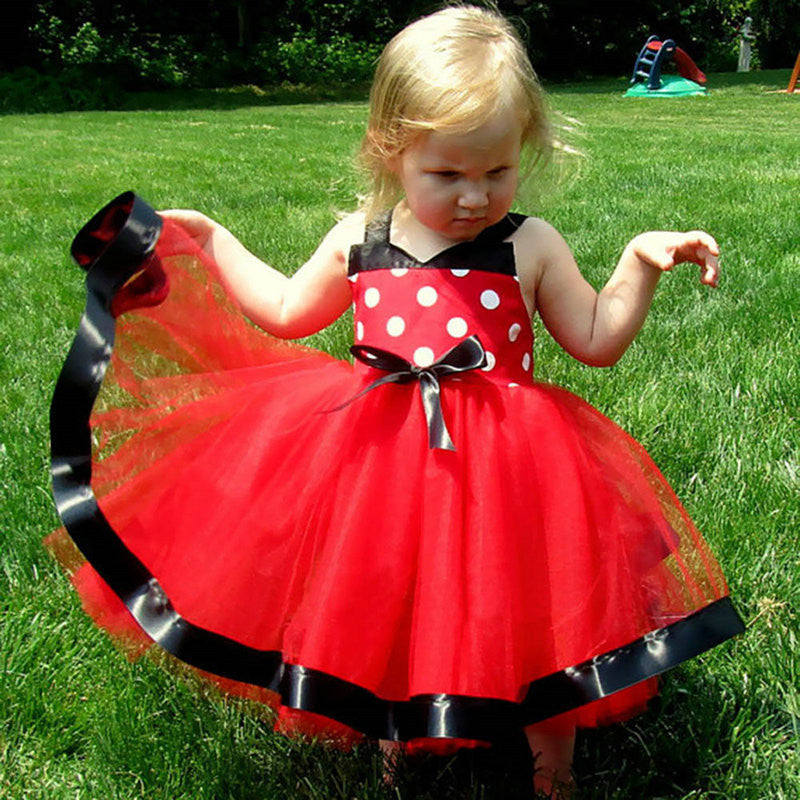Casual Cotton Kids Girls Red Dress New Arrival Toddler Princess Girls Polka Dots Wedding Party Pageant Bubble Dress Tulle Dress UBY