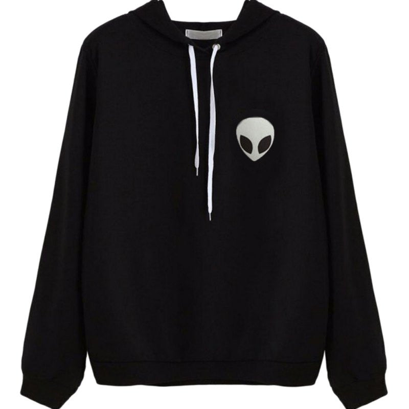 Casual Wear Pullovers Hoodies Women Clothing Alien Print Hooded Long Sleeve Sweatshirt Plus Size UBY