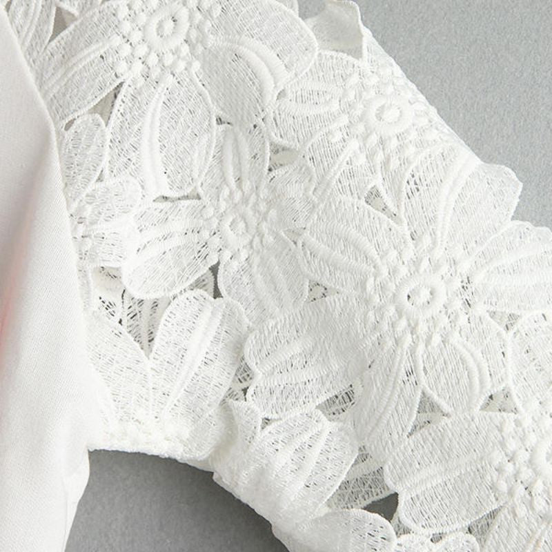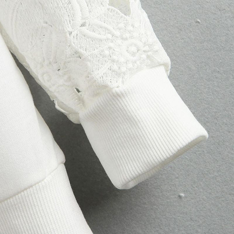 Casual Women Round Neck Sweatshirts Lace Hollow Out Pullovers Loose Bottom Plus Size UBY