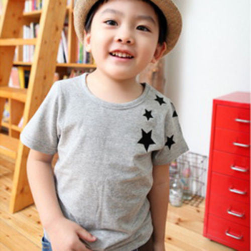 Children Kids Boys Korean Version Star Pattern Short-Sleeved Cotton T-shirt 2-7Y UBY