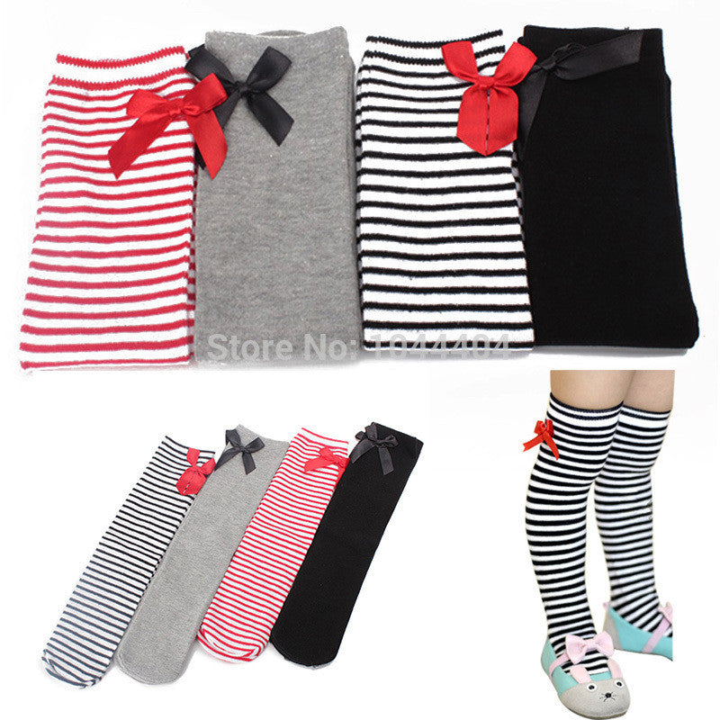 Cotton Kids Baby Bowknot Stripes In tube 1-8Y Girls Dress High Stocking  UBY