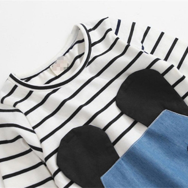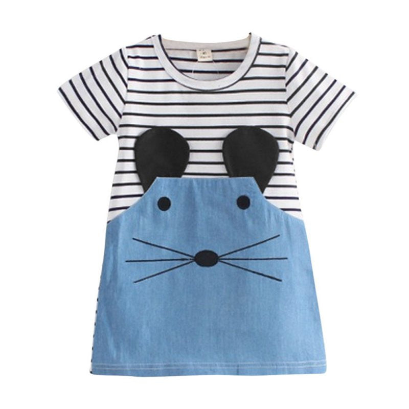 Cute Baby Kids Dress Toddler Girls Long Sleeve Striped Patchwork Denim Dress 2-6Y UBY