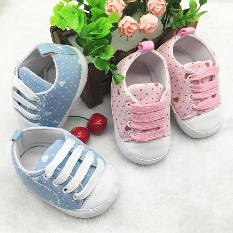 Cute Love Polka Dot Print Crib Shoes Boys Girls Laces Up Anti-Slip Sneaker UBY