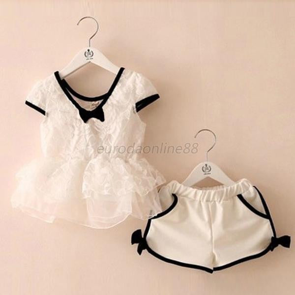 Cute Pincess Kids Baby Girls White Lace TopsBowknot Shorts Pants 2PC Set Hot UBY