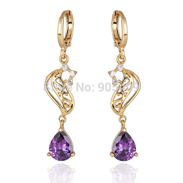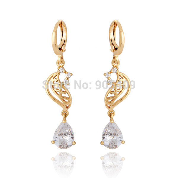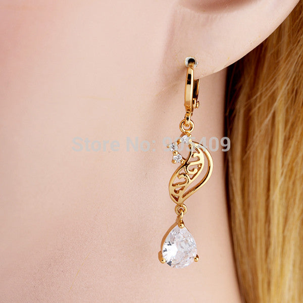 Elegant 18k Golden Plated Crystal Charm Jewelry Dangle Earrings for Women Ladies UBY