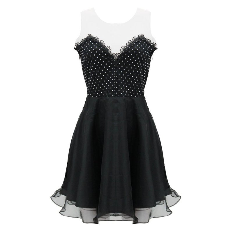 Elegant Woman Sexy A Line Black Deep V Neck Backless Dresini Short Tulle Dress To Party UBY