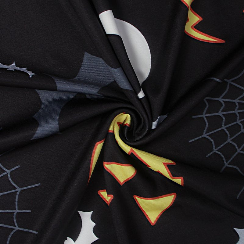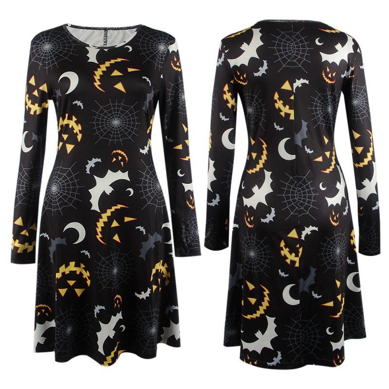 Elegant Women Bat And Moon Polyester Print Dress With Full Sleeve And O-neck For Halloween UBY