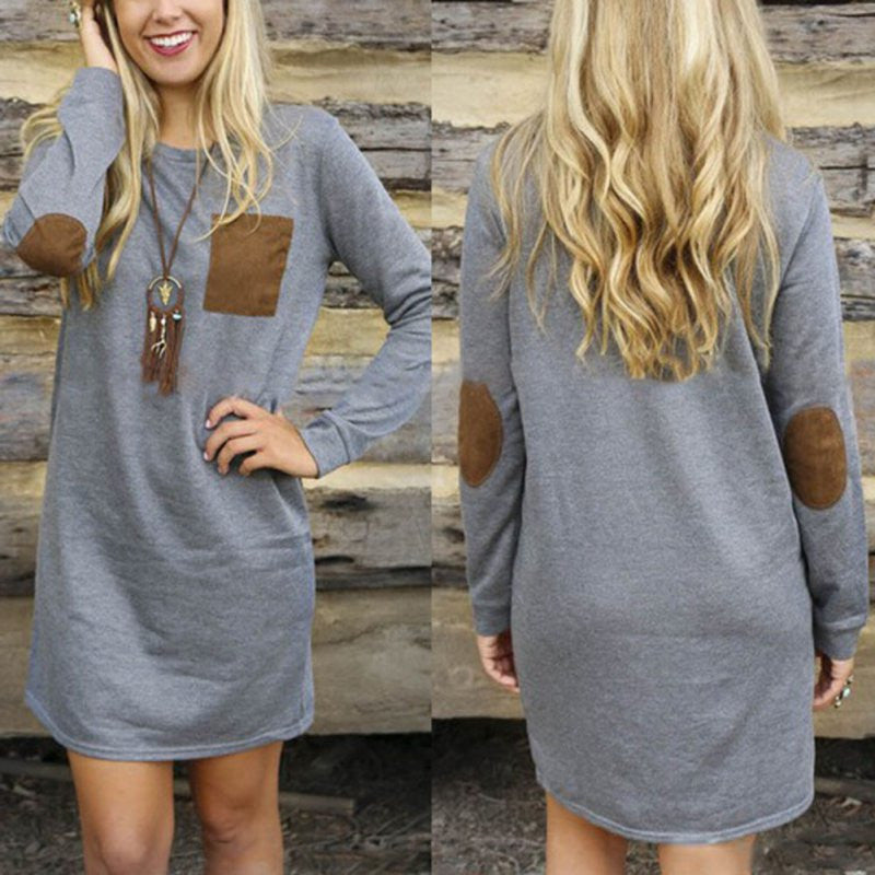 Elegant Women Long Sleeve Dresses Long Tops Jumper Pullover Sweatshirt Mini Dress UBY