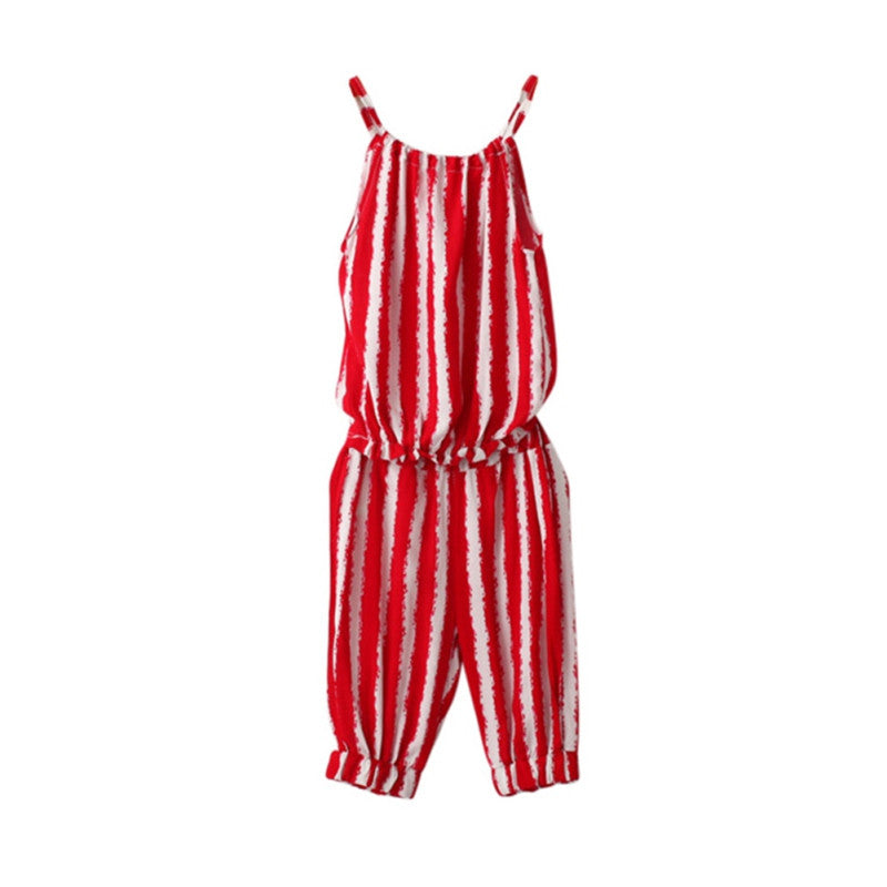 Kid Baby Girls Casual Jumpsuit Outfits Sets Baby Girls Striped VestCrop Pants Clothes Suits UBY