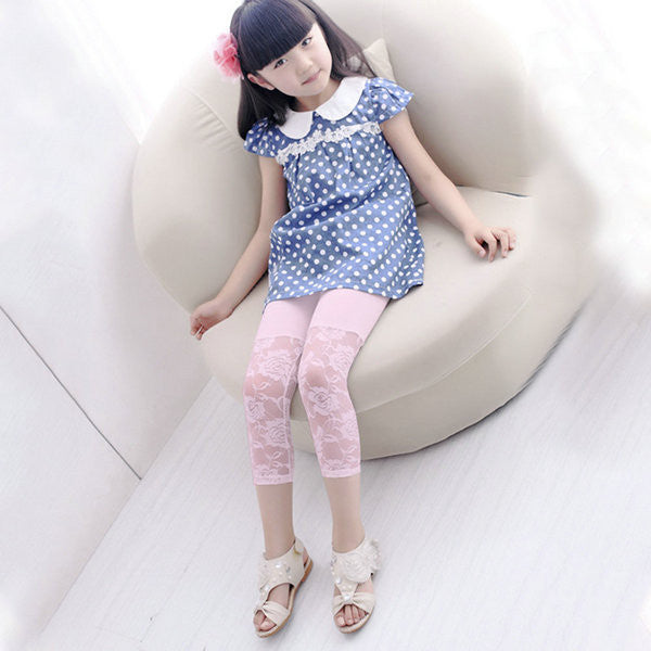 Summer Baby Kids Girls Cropped Leggings Lace Floral Casual 3 4 Capri Pants Trousers 2-7Y HT UBY