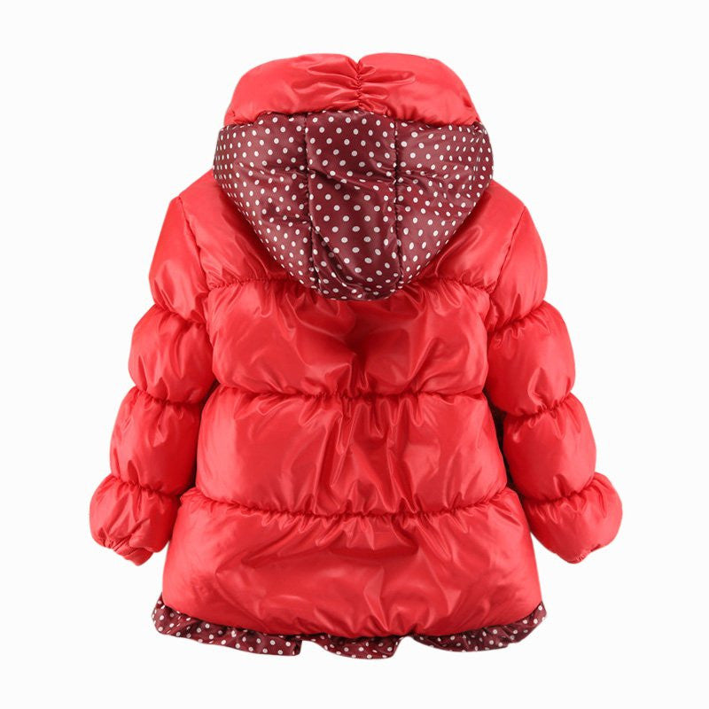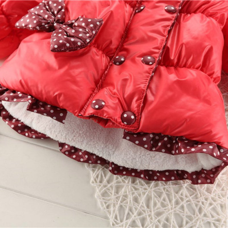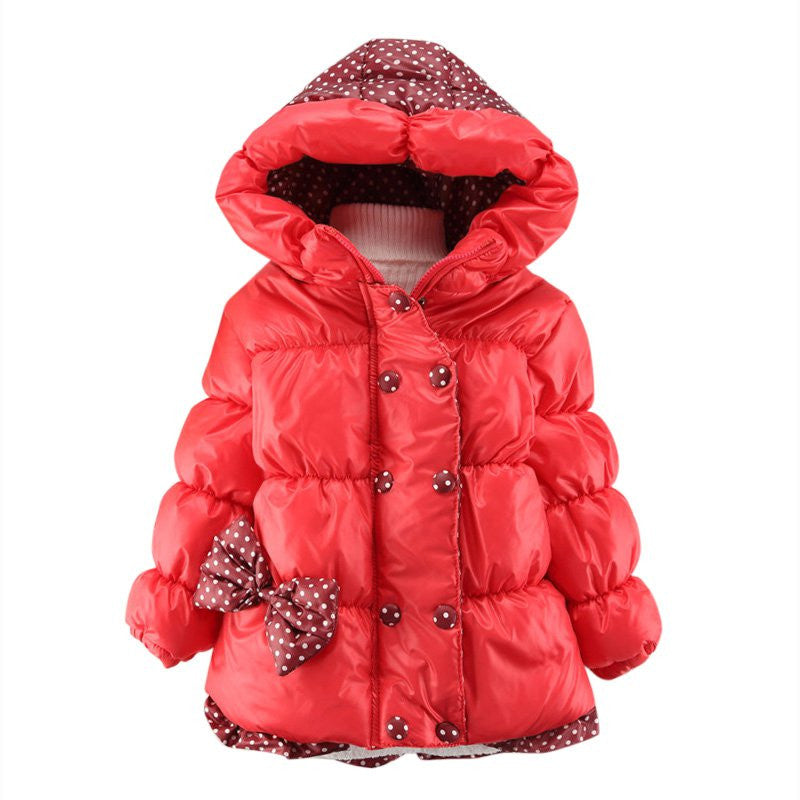 Super Warm Baby Girl Down Coat Bebe Hooded Jacket Bowknot Long Sleeve Jackets Kids Polka Dot Outwear UBY