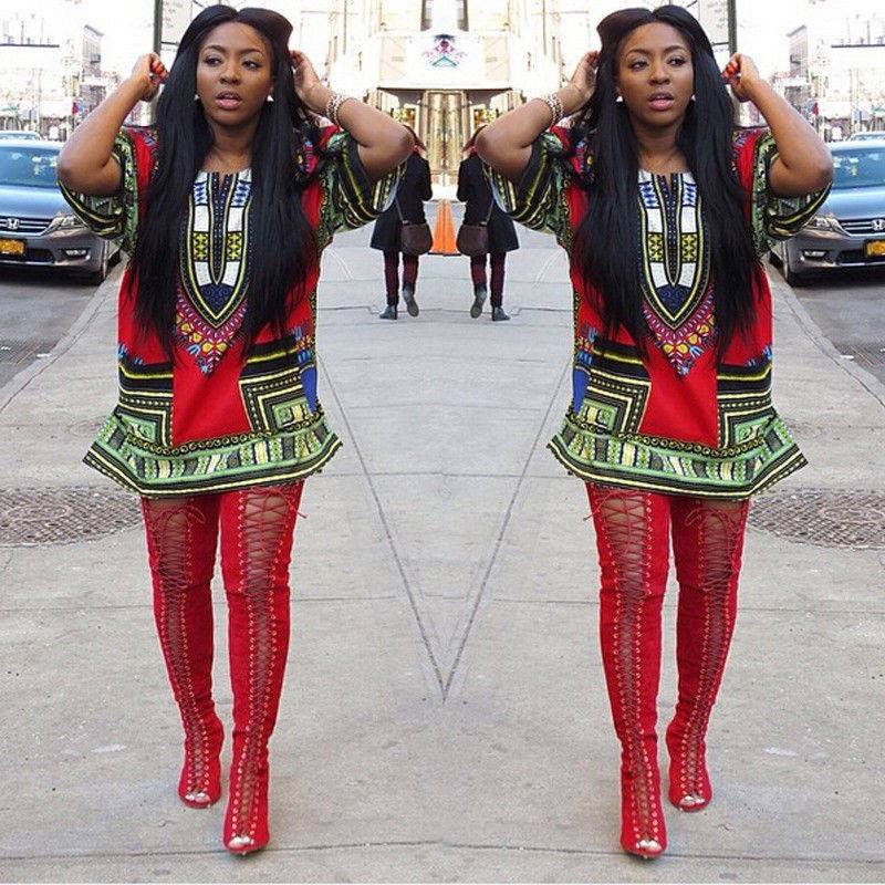Women African Festival Dashiki Shirt Kaftan Boho Hippe Gypsy Festival Tops Party Dress LY3 UBY